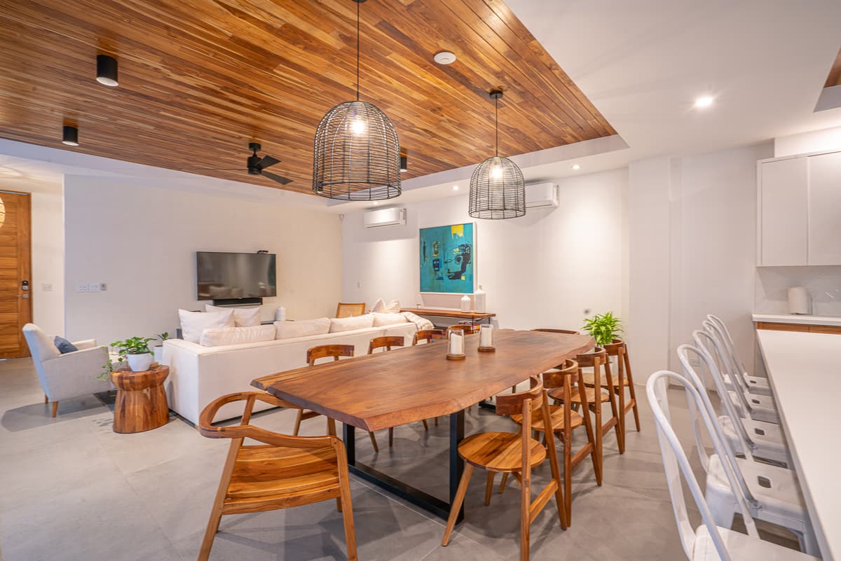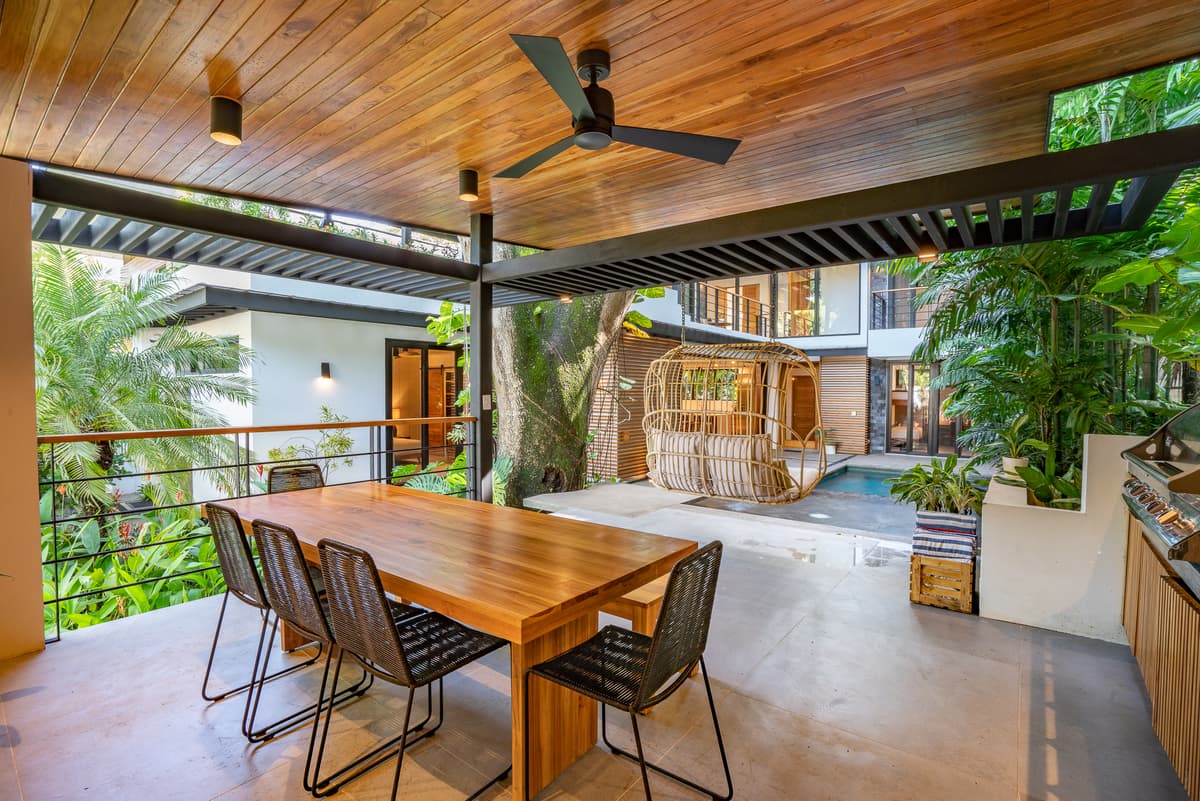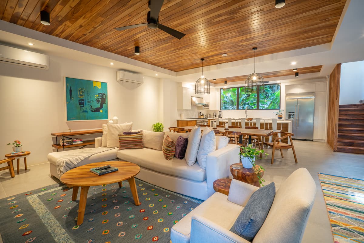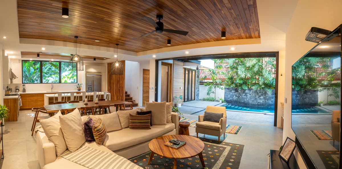 Designed with local materials, handcrafted furniture, and sustainable touches, Casa Besos combines contemporary elegance with the laid-back charm of Costa Rica. Its indoor-outdoor flow, private pool, and spacious living areas make it ideal for families or groups seeking a premium Nosara stay.